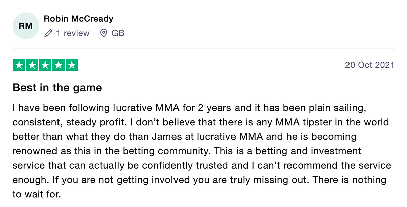 Our results are irrefutably tracked by the leading MMA bet tracking website in the world, BetMMA.tips